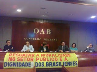 Foi excelente e de altíssimo nível o debate promovido pelo Movimento Adote Um Distrital, evento prévio da passeata "Reage Brasília" que acontecerá no dia 23 de agosto, ás 16 horas na praça do Buriti. O debate, cujo tema foi: "A Participação da Sociedade no Combate à Corrupção" , aconteceu na sede da OAB Nacional, no dia 06 de Agosto e contou com a participação dos seguintes debatedores: Henrique Ziller , do IFC; Sylvio Costa, do portal Congresso em Foco; Ceomar Manhas, representando o INESC; Dr. Maurício , representando a OAB; e Dr. Alexis Souza, economista e advogado, chefe da Corregedoria da Câmara dos Deputados. A mediadora do Debate foi a jornalista Simone Moraes do Câmara em Pauta.