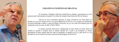 “Se o Iphan autorizar a proposta do governo, terá de responder por uma ação pela irresponsabilidade porque não estará cumprindo o seu papel”, defende também a arquiteta Tânia Batella, do Fórum ONGs Ambientalistas do DF. Ela frisa ainda que a proposta de ocupar a área da 901 Norte não foi apresentada na audiência pública do PPCUB deste sábado, evento que visa discutir com a comunidade os principais pontos para a conservação do patrimônio histórico de Brasília.